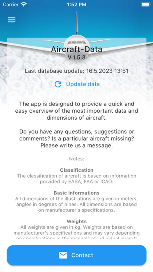 Aircraft types not yet covered or new ones will be added at regular intervals. If you miss an aircraft that is important to you, please send us a notification via the app.