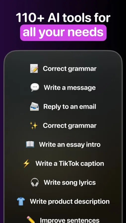 TextAI includes 220+ AI writing tools for all your needs in different categories and becomes your ultimate AI pocket writing assistant.
