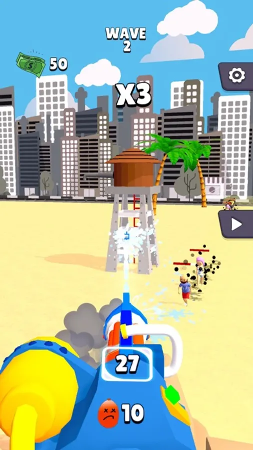 You will win money as you shoot the incoming people. You can build new towers by upgrading with the money you won, and also you can find new people who can help you to battle. You can eliminate many people at the same time by destroying the water towers. You can make your water towers bigger with the money you won or you can widenyour castle’s borders. Let’s see how you will make war with so many people at the same time.