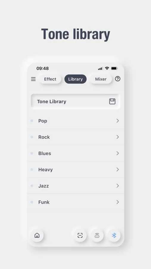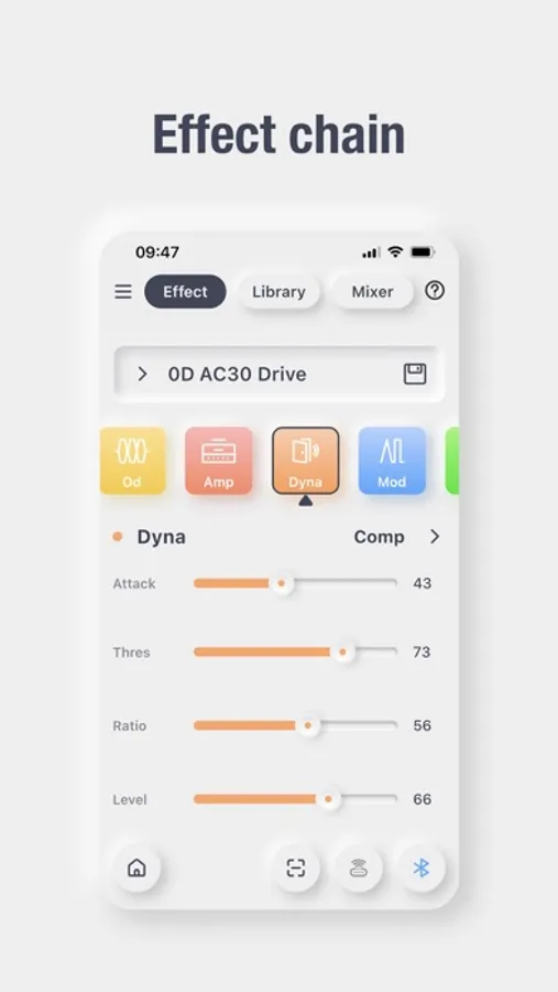 2. Select and adjust the parameters of the amp model, eq, and modulation effects through the App.