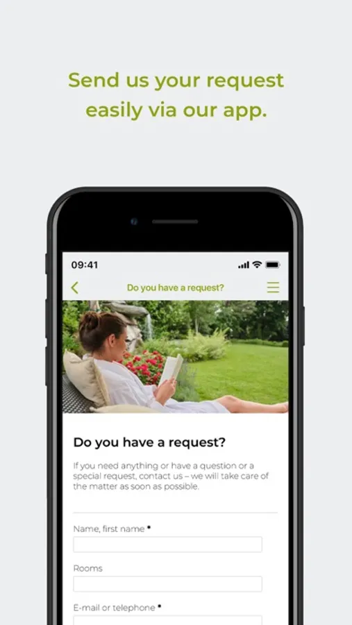 You would like to use our pick-up service or learn more about our sauna and bathing area? Simply send us your message via the app, book online or contact us via the chat feature.