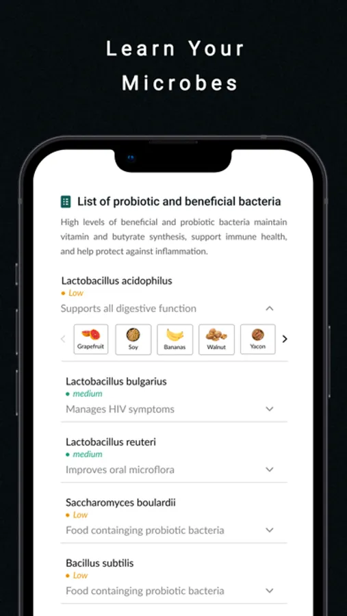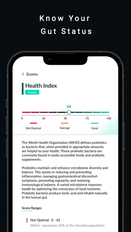 Foods have strong influence on reshaping the gut microbiome since specific foods increase the growth of probiotic bacteria or decrease the pathogenic bacteria. The presence or absence of certain bacteria indicates which foods are utilized by your gut bacteria and hence, allow Genofax’s prediction methods to infer the food recommendations for your to improve your Gut Status™ scores.