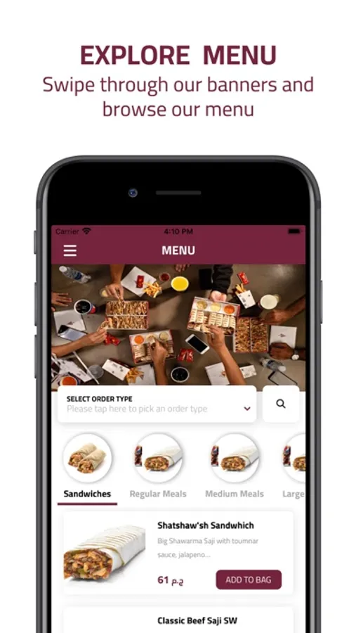 From Shawarmer App, You can View our Menu and Order Online from our Shawarmer branches