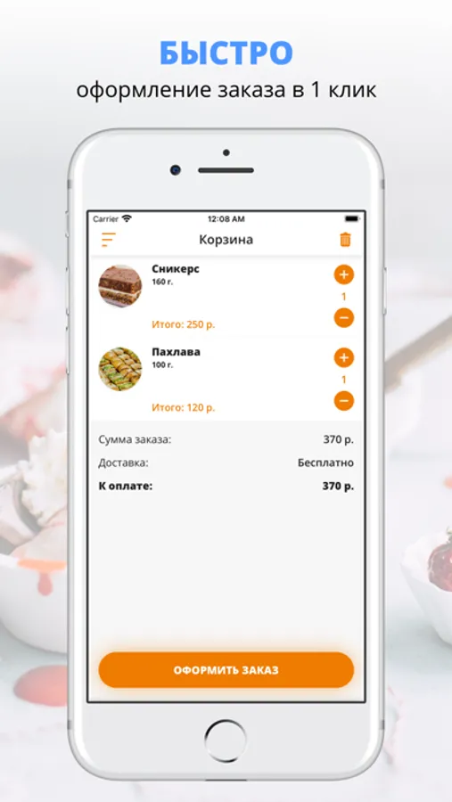 Скачивайте наше приложение, оформляйте заказ и наслаждайтесь любимой едой, где бы Вы ни были! Приятного аппетита!