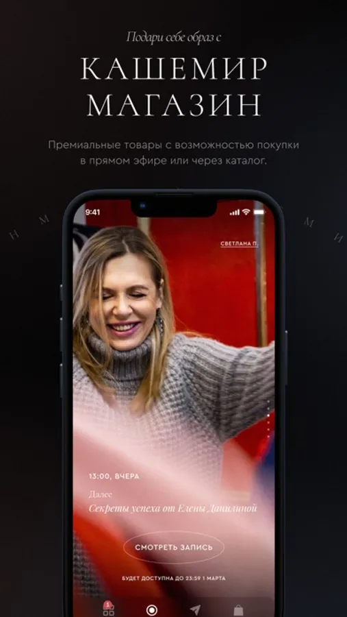 Собери свой новый гардероб с Кашемиром. Подключайся к ежедневным прямым эфирам и получи возможность покупки со скидками до 90%. Следи за уведомлениями в приложении и забирай свой шанс на лучший сейл премиальной одежды и обуви!