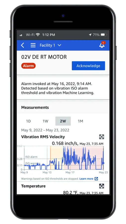 SKF Axios is a simple, wireless and scalable end-to-end predictive maintenance solution. It’s a cost-effective, cloud-based condition monitoring solution from SKF and Amazon Web Services (AWS). SKF Axios collects and analyzes vibration and temperature data to detect equipment anomalies and provide notifications on the health of your machinery. When abnormal machine conditions are detected, users are alerted so they can respond with proper maintenance. The service is accessible via a mobile or web-based app.