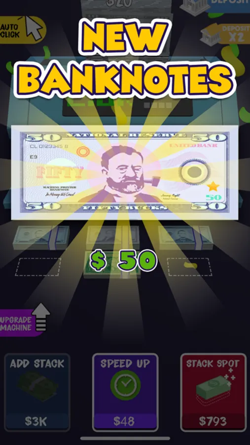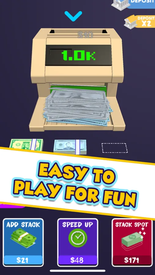 Experience the satisfaction of counting money with a counter, Click as much as you can and count the money, Put them in the brief case and spend them later, But don’t forget to tap tap tap!