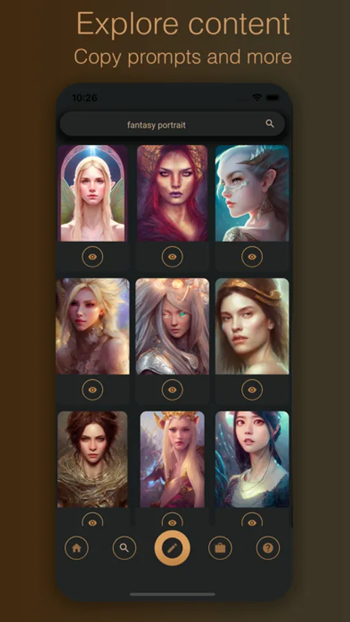 With Studio AI you will be able to explore millions of photos generated with Artificial Intelligence, in addition to this we allow you to copy the prompts of the images to use them wherever you want.