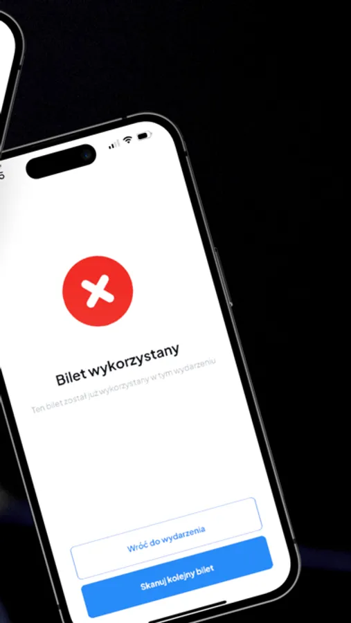 W sytuacji gdy bilet jest właściwy, aplikacja poinformuje Cię o tym pozytywnym komunikatem. W przypadku gdy bilet jest nieważny (został już użyty lub przeznaczony jest na inne wydarzenie), otrzymasz informacje w postaci ekranu z błędem.