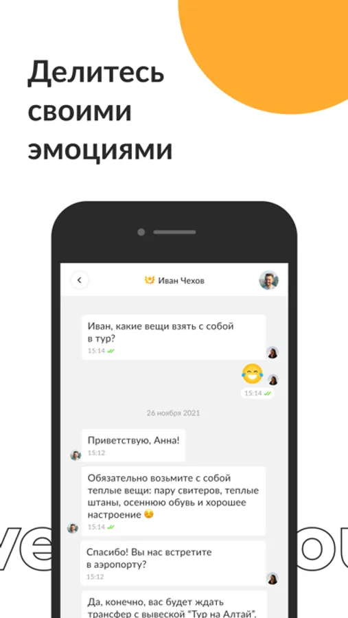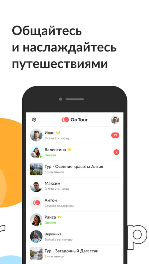 В приложении GoTour вы сможете общаться с организаторами и участниками туров напрямую и в группах. Для вашей безопасности мы тщательно проверяем каждого организатора тура.
