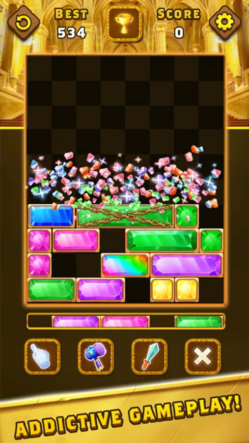 It moves the jewel horizontally, filling it with one line and repeatedly eliminating it for a high score. Moreover, once you move any Jewel block, the new Jewel block line will automatically add.