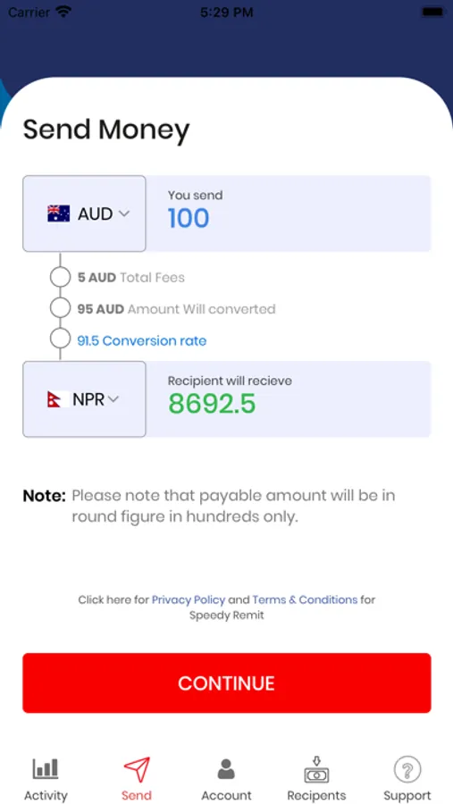 Speedy Remit aim to make money transfer process effortless and super fast. We maintain complete transparency to give you better control over the transactions and our thorough verification processes make sure the money is safe and reaches the right recipients.