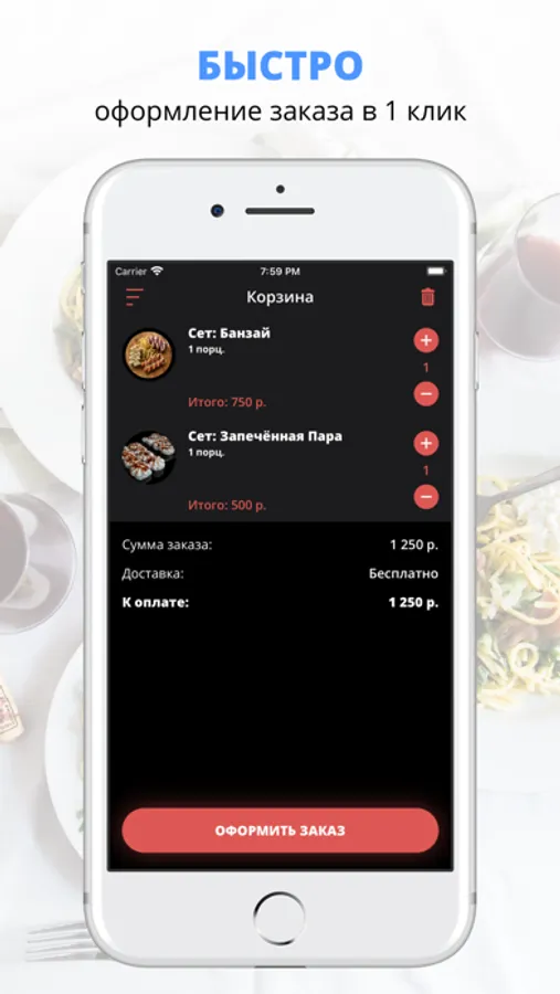 Скачивайте наше приложение, оформляйте заказ и наслаждайтесь быстрой доставкой и любимой едой, где бы Вы ни были! Приятного аппетита!