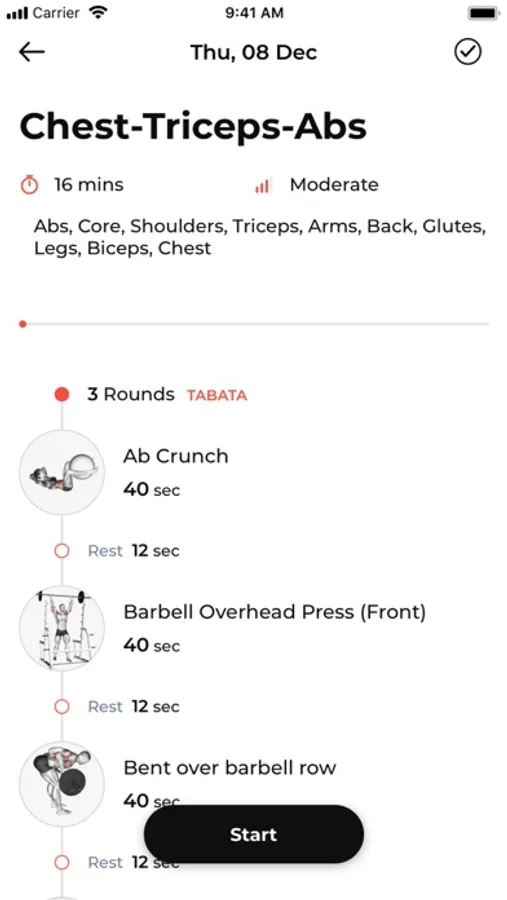 App also uses Apple Health to track energy burned and heart rate during a workout session, if an Apple Watch is used.