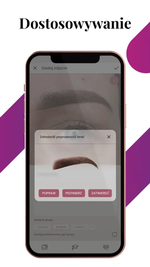 Mobilna przymierzalnia brwi. Dzięki naszej aplikacji możesz w domowym zaciszu przymierzyć dowolne rodzaje i kształty brwi.