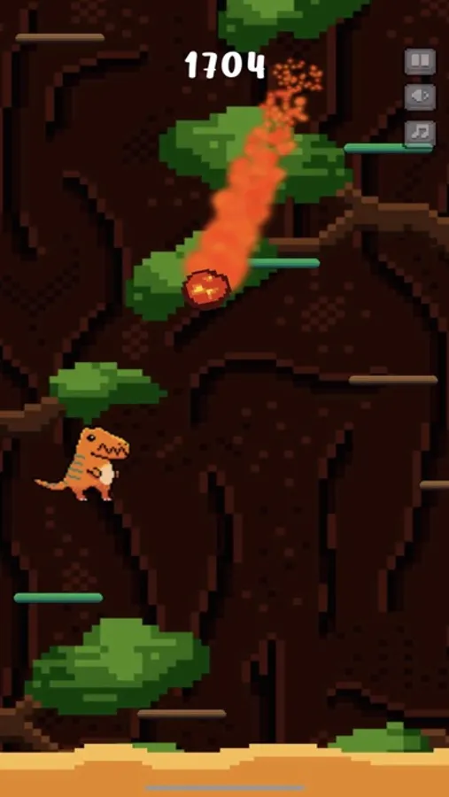Jump Roi Jump is a game where you play as a T-Rex trying to out-jump the rising lava. You must jump from platform to platform, avoiding hazardous platforms and meteors that fall from the sky. You can pick up delicious boosts in the form of food to help you along the way. The goal is to get the highest score possible. There are 8 playable characters to choose from. Please enjoy!
