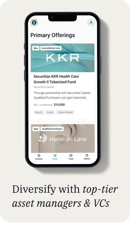 Securitize Markets is a leading platform expanding unique access to real-world, private market asset classes. Individual investors choose from expertly-curated investment offerings to build a private markets portfolio comprised of funds from top-tier asset managers like KKR and Hamilton Lane - without the usual $2M investment minimums and 10+ year lock up periods.