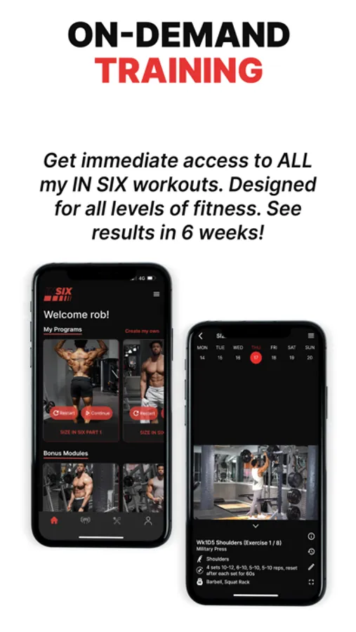 IN SIX programs have been designed for beginners as well as experienced gym goers. – if you want to transform or hit a fitness goal, this app is perfect for you.
