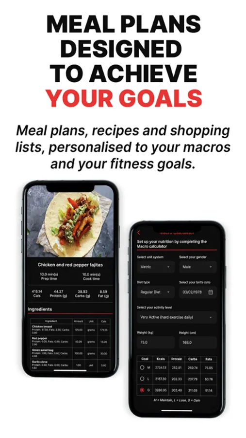 I have built a macro-calculator within the app which personalises your meal plans to your goal. This can be adjusted at any stage throughout your journey, as your weight increases or decreases.