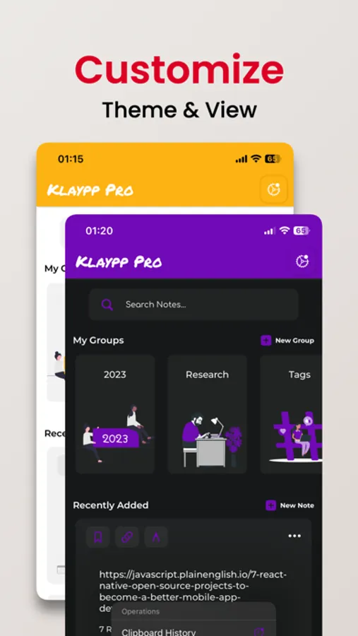 - Klaypp provides an environment where can personalize and organize your added items by grouping them.