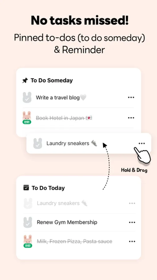 Also with “putting off to tomorrow” feature, easily move uncompleted tasks to tomorrow and finish them!