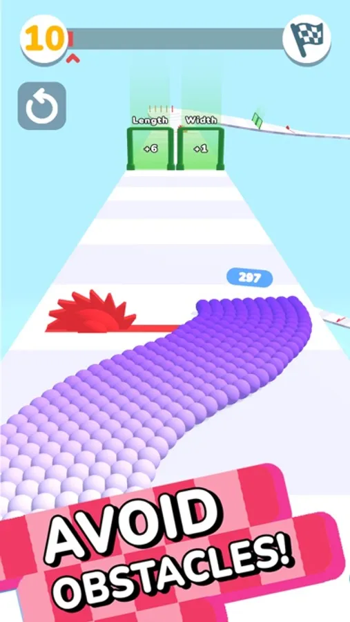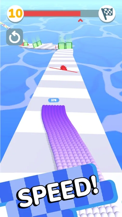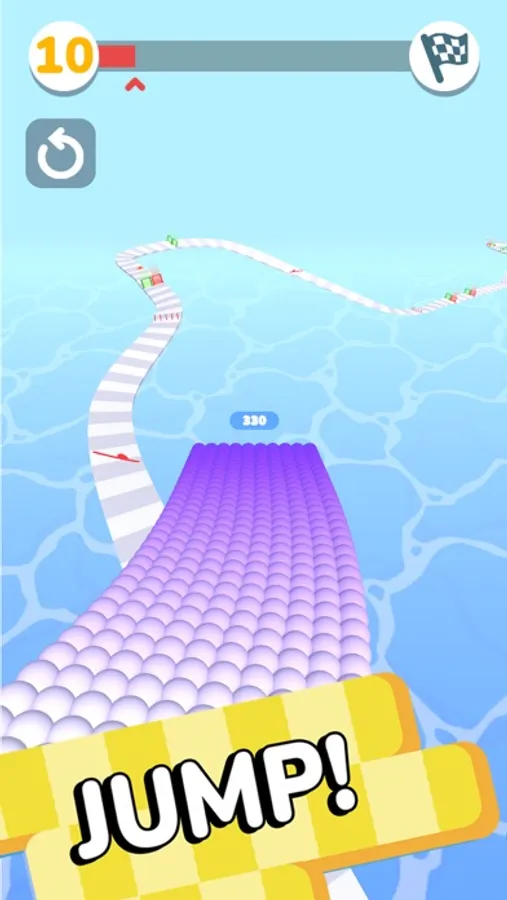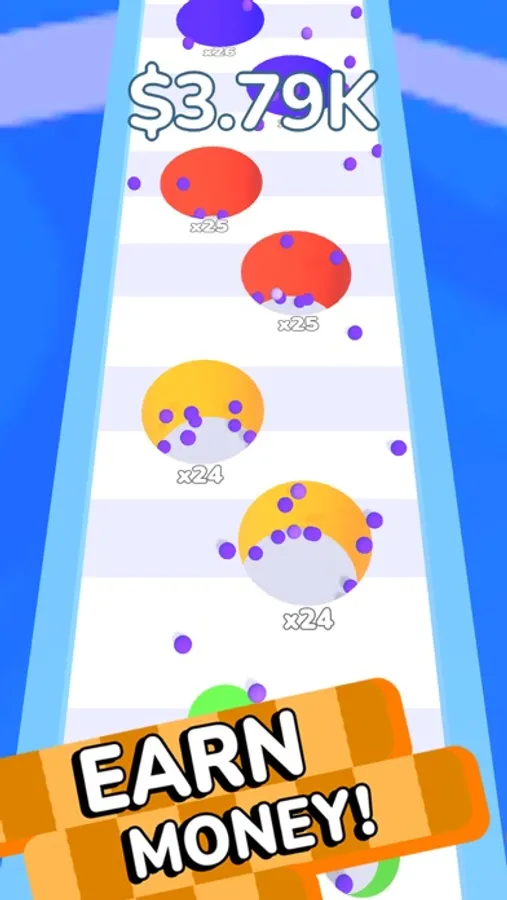 Swipe left and right for control. Jump down from the road to fly and accelerate. Collect and multiply balls reach the finish line then jump and fill as much holes as you can.