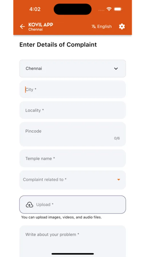 Kovil App provides a way to digitally capture all of the problems in the temple by anyone who wants to report it to the central authority.