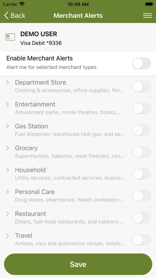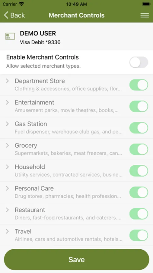 CardNav enables you to set controls regarding the transaction types, geographic rules, and the merchant types where your card can be used.
