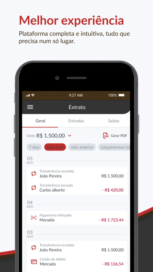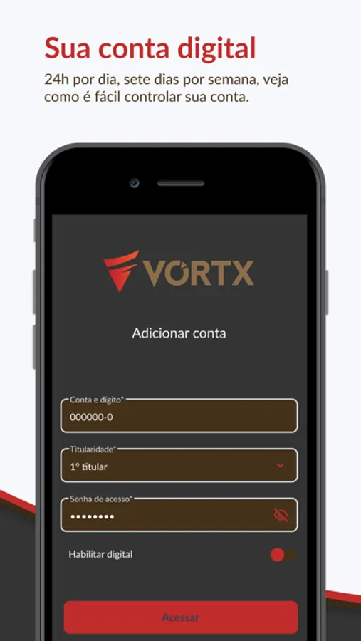 Vortx é o seu home banking na palma da sua mão, disponível 24 horas por dia. Você não precisa perder tempo indo na agência se você pode resolver agora mesmo: