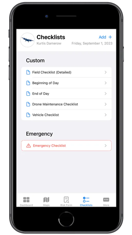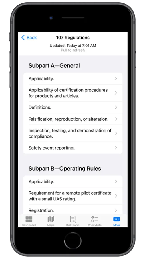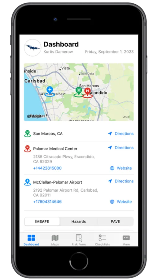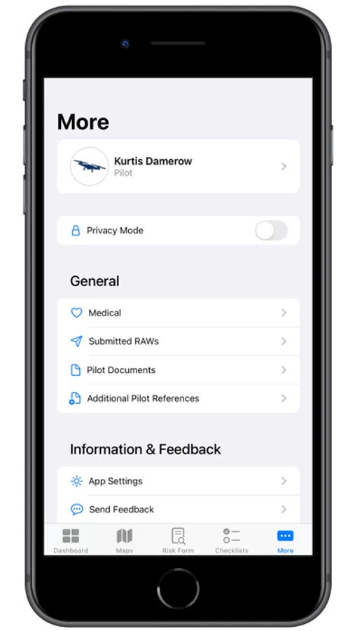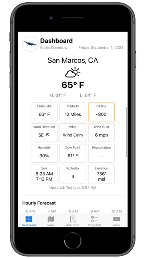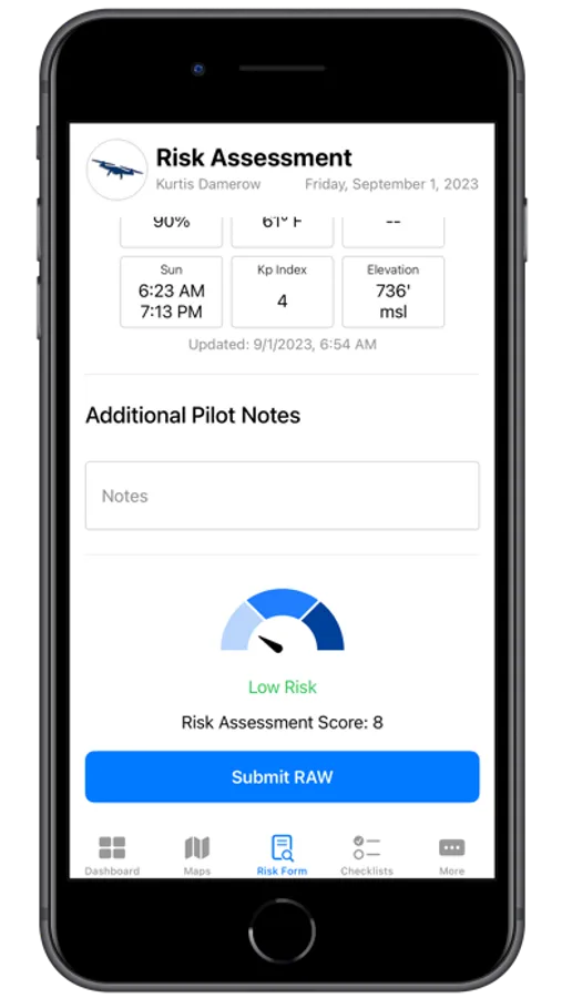 Check airspace, weather, checklists, pilot document storage, risk assessments, Part 107 reference book, and more.