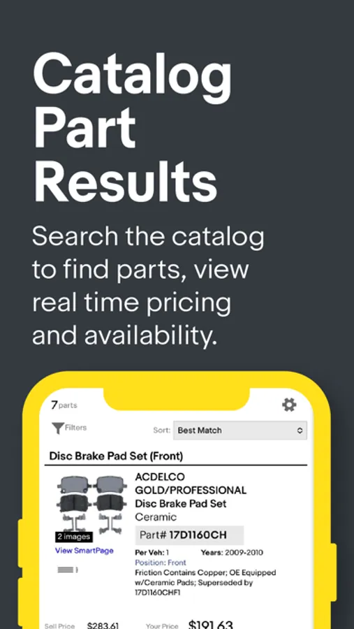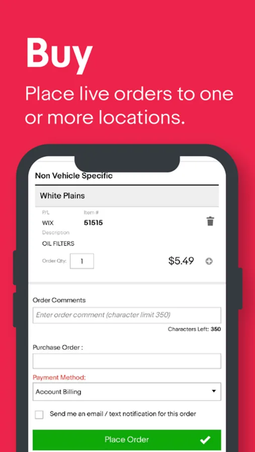 Bumper to Bumper mobile is an easy and secure way to place your parts orders directly from your mobile phone, no matter where you are. The application allows you to search for your parts and display the prices as well as the real-time availability of these according to their number or by type of vehicle with the year, make and model. The easy navigation between different parts suppliers, the ability to scan the VIN with your phone, the synchronization of the solution between the mobile and your PC and the possibility of placing orders directly to one or more sites within a same seller are also features of the mobile app that make your purchases much easier.
