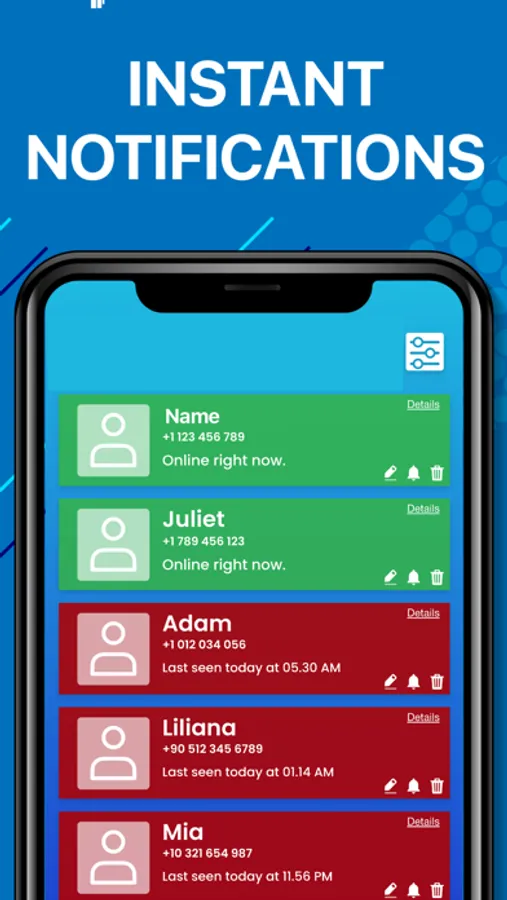 Add people whose online and offline activities you want to monitor. Let's send you a notification every time these people are online and offline. In addition, you can see at what hours and for how long these people stay online, and you can follow all the details with the reports we offer you.