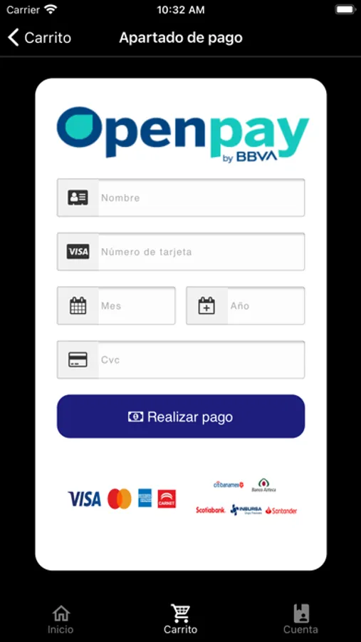 - Pago con tarjeta bancaria.