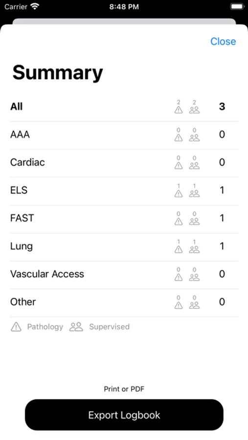 Easily flag pathology, add images, obtain signatures if you're producing a logbook with supervised scans, and export your logbook or view a summary at anytime.
