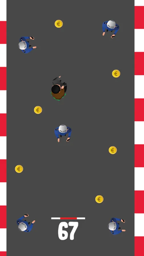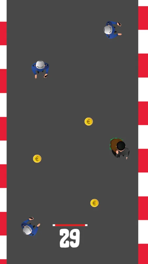 You have to collect all the coins without getting caught by the officers. But be careful with the time for that. It's very easy after that. It is your turn. Let's get started!