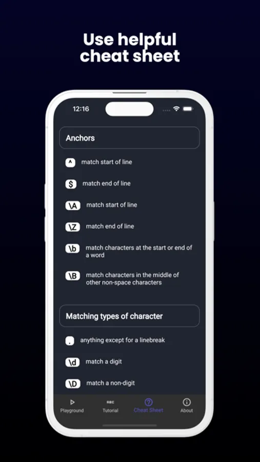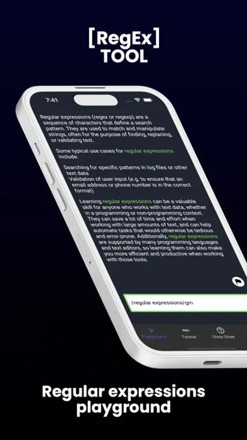 Our app is perfect for developers, data analysts, and anyone looking to boost their skills in regular expressions. Download now and start mastering regular expressions today!