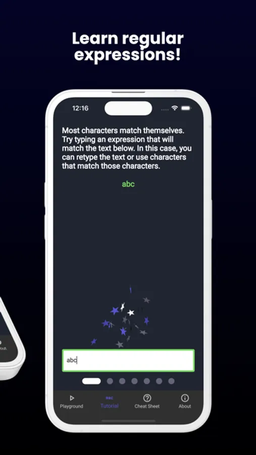 Our app features interactive tutorial that guide you through the basics of regular expressions and gradually increase in difficulty as you improve.