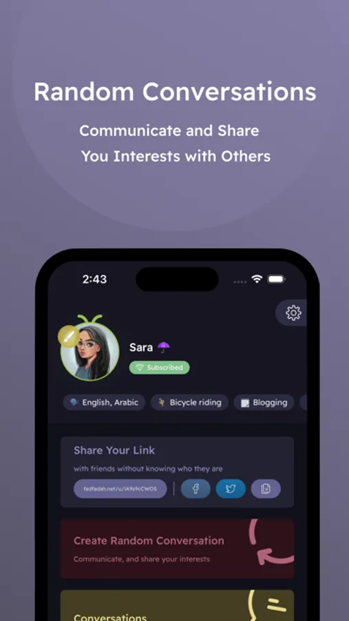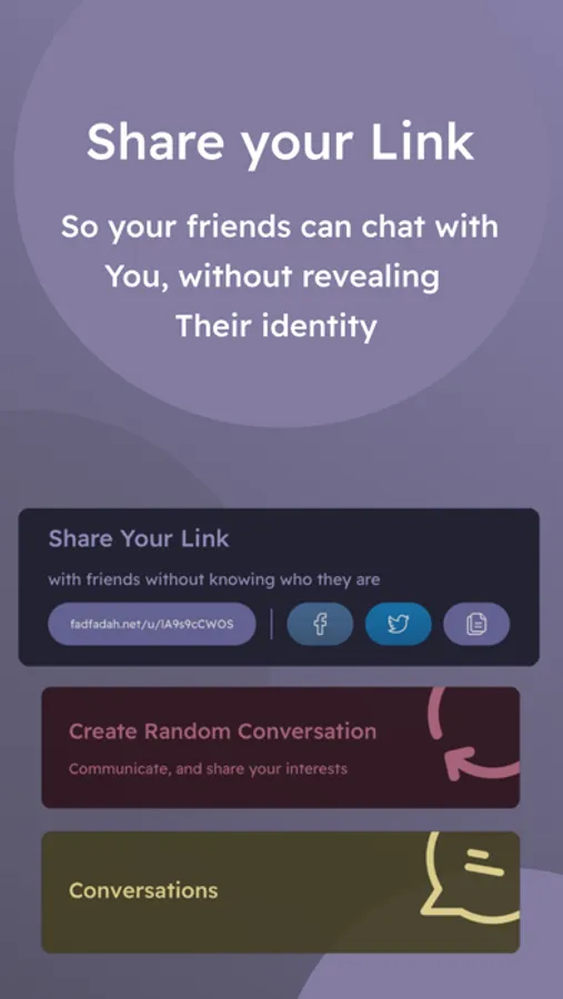 Fadfadah Chat, allows you to meet new people and make random conversations with them, you also can send a link to your friends friends to start a conversation with you, without revealing their identity.