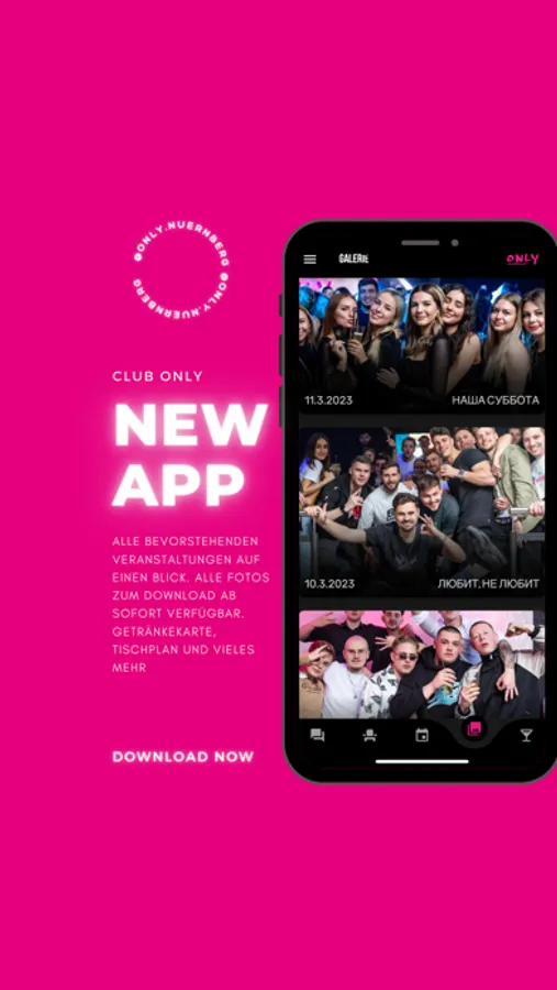 Lade jetzt Only Nürnberg herunter und mach deine Nächte unvergesslich! Only Nürnberg, Deine Diskothek in Deiner Tasche.