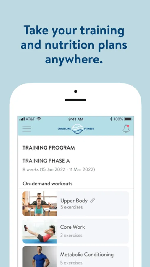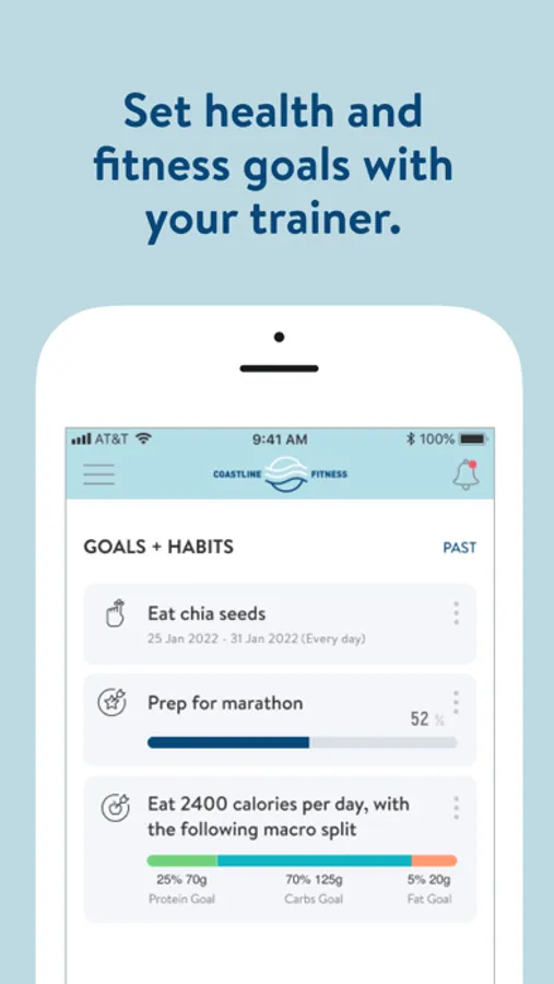 With the Coastline Fitness App, you can start tracking your workouts and meals, measuring results, and achieving your fitness goals, all with the help of your personal trainer.