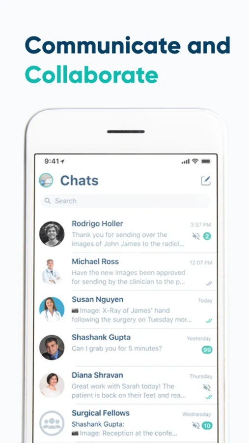 • Switch hospital networks to stay up-to-date with all your communication from multiple hospitals you are part of.