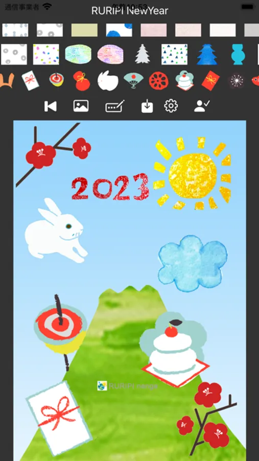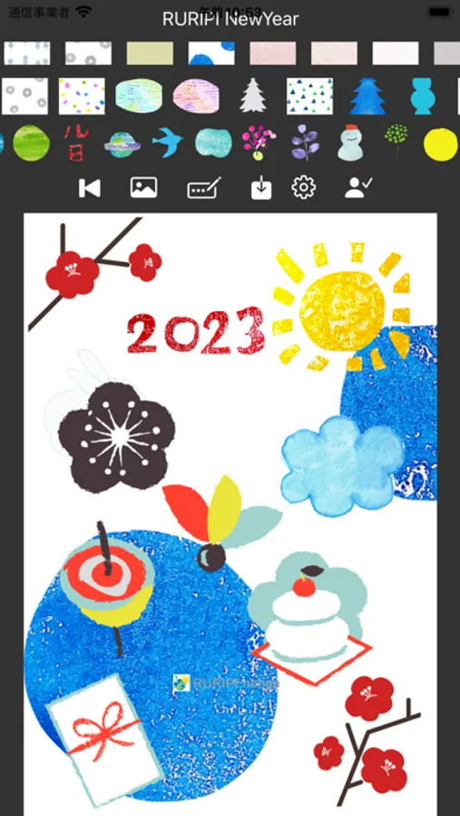 You can make New Year Collage Images. Add Photos,Stamps and patterns. Long press items to remove. You can save to upload on SNS or print.
