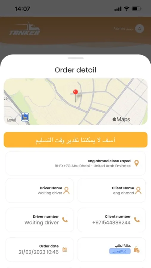 Cette application est interne au personnel de tanker (admin et autres rôles) et permet de faire des opérations sur les orders créer par le client mais aussi de créer des orders pour un client qui appel par téléphone et même créer le client en tant que user guest s'il n'existe pas dans le système