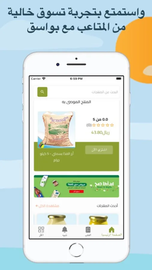 تسوق البقالة عبر الإنترنت ووفر الكثير في قائمة التسوق الشهرية للبقالة. قم بالتنزيل الآن واستمتع بأقل أسعار البقالة في المملكة من أفضل تطبيق لشراء البقالة .