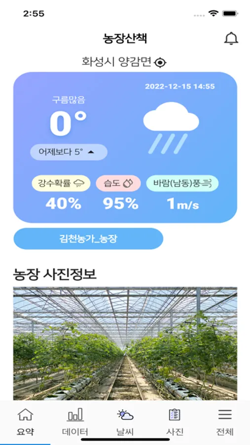 2. 영농계기판을 통해 등록 된 농장의 온/습도 및 CO2, 일사량 등을 확인합니다.