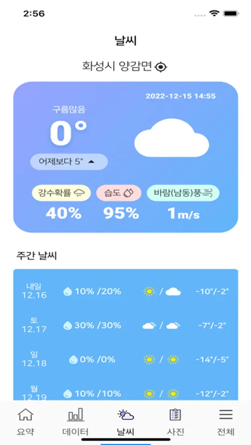 스마트팜 농장에 필요한 핵심 환경(온습도, 일사, Co2, 근권온도)데이터를 제공합니다.