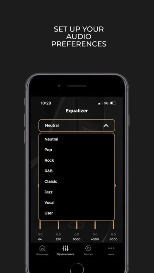 - Customize your sound: choose from our different predefined equalizers (Jazz, Rock, Pop...) or customize your own User equalizer.