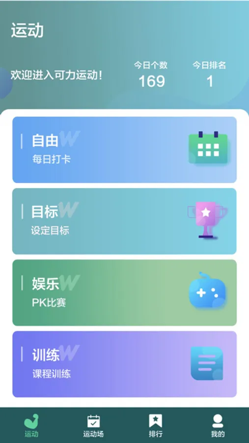 可力运动是一款集基础握力训练、互动娱乐训练、竞技排行等为多项功能模块为一体的运动健身类软件,需同可力握力器硬件产品配合使用,拥有多模式的单人握力基础训练、机器人教练指导监督教学、仿真3D运动场景等,实时显示握力运动数据,轻松实现个性化健身运动。