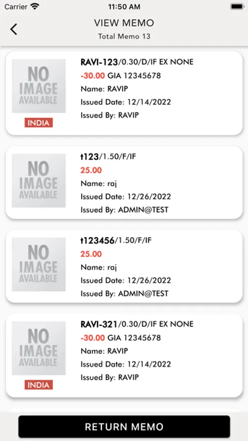 One stop application for all your diamond MEMO request. Check the MEMO STATUS of all types of diamond.