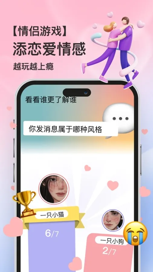 -情侣测试:多样测验主题,多维度亲密关系,轻松了解彼此优势,帮助你们更好的成长,get到你心中Ta的所想所答,让恋爱生活更多乐趣。